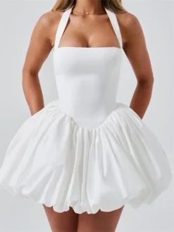 Women Summer White Dress Puff
